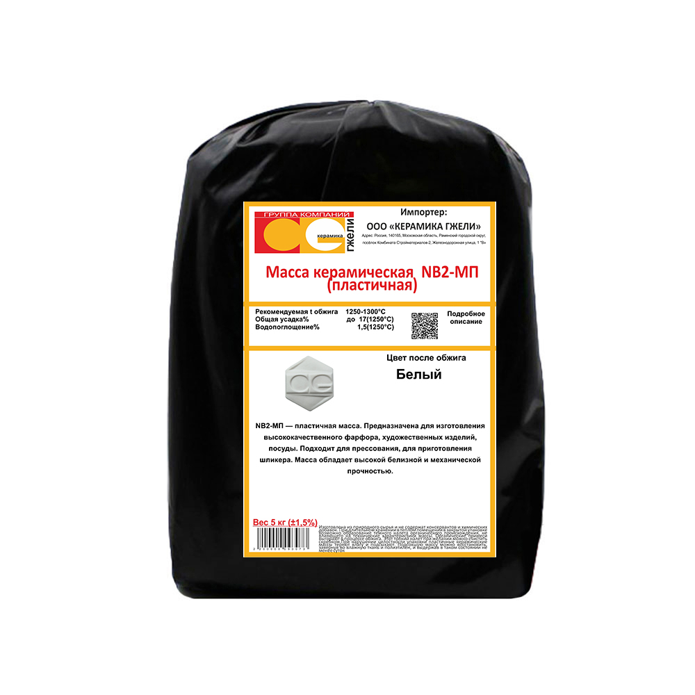 NB2-МП — пластичная масса. Предназначена для изготовления высококачественного фарфора, художественных изделий, посуды. Подходит для прессования, для приготовления шликера. Масса обладает высокой белизной и механической прочностью.