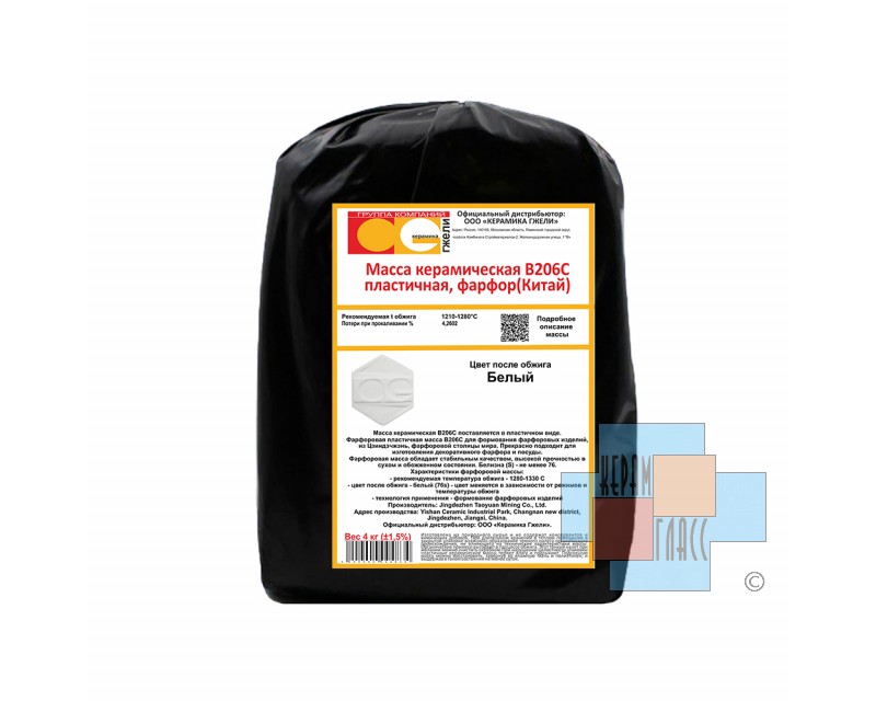 Масса керамическая B206C порошок (фарфор) 1210-1280°С (Китай) фасовка бег-бег
