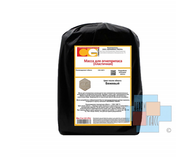Масса для огнеприпаса используется при изготовлении вспомогательных огнеупорных материалов (капселей, лещадок, стоек и др.), применяемых при обжиге изделий тонкой керамики. Масса огнеупорная, поставляется в пластичном виде. Формование из пластичной массы обычными способами.