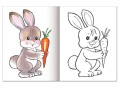 На разворотах раскрасок — подобранные специально для малышей крупные изображения животных, насекомых, растений и предметов, а также цветные образцы, которые помогут ребёнку правильно раскрасить картинку.