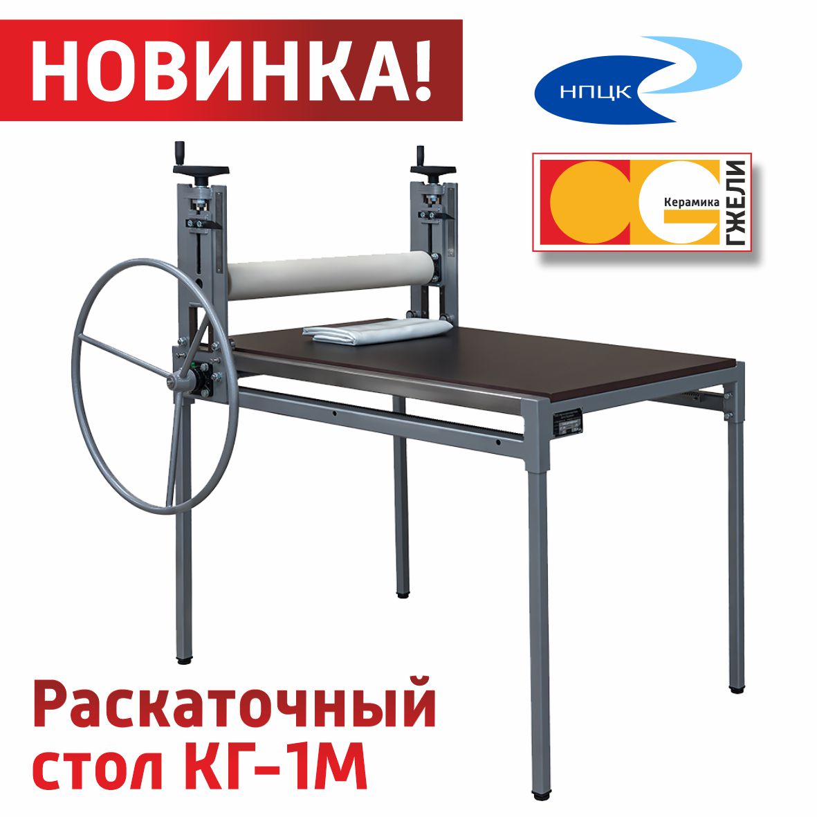Раскаточный стол КГ-1М производства ООО «Научно-производственный центр керамики» группы компаний «Керамика Гжели» - модифицированная версия раскаточного стола КГ-1. Позволяет получать заготовки для керамических изделий в виде пластов с равномерной толщиной, что предотвращает деформацию и трещины при сушке и обжиге керамических изделий.