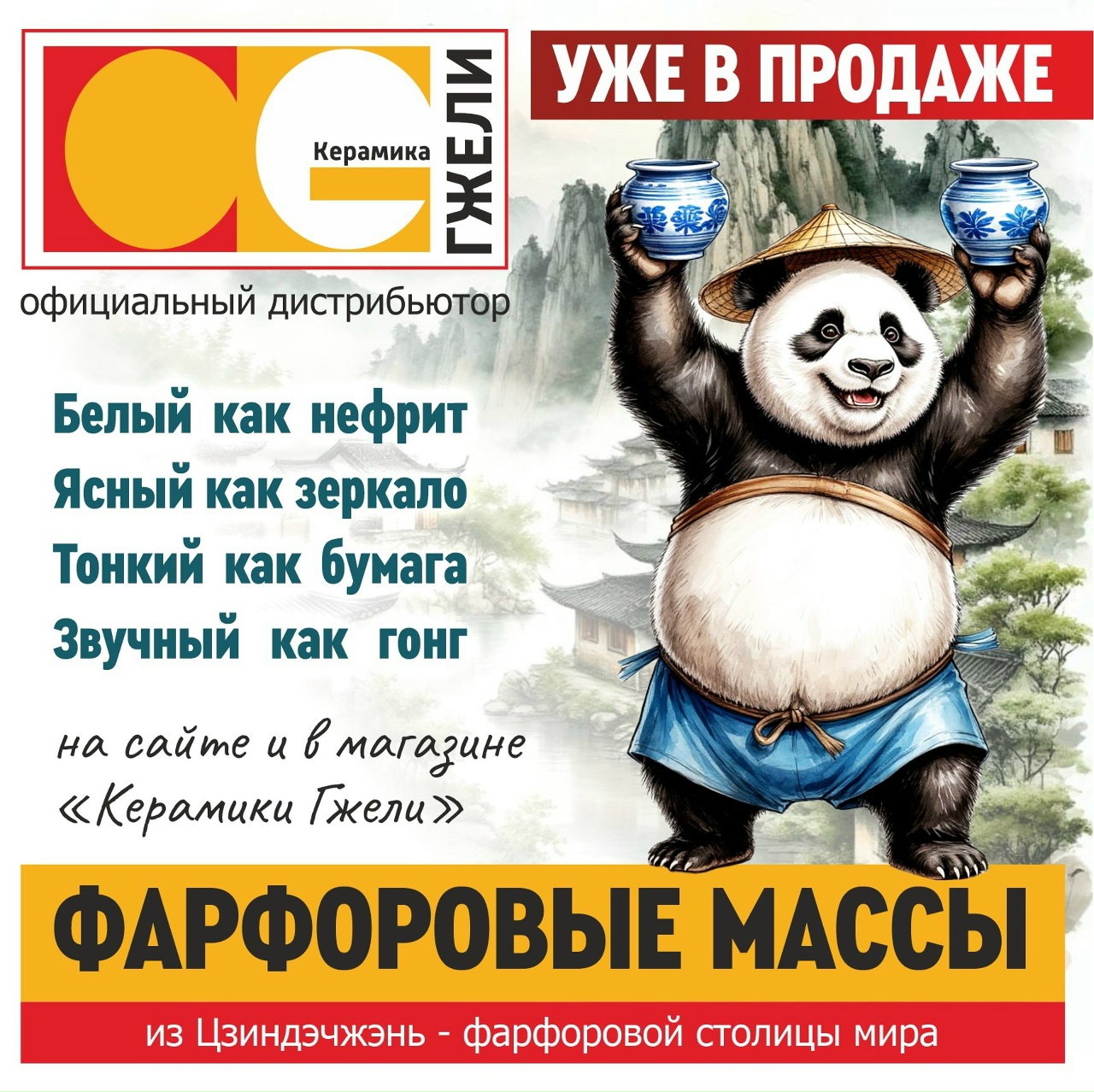 Свершилось! Национальное достояние Китая - фарфоровые массы из провинции Цзиндэчжэнь, мировой столицы фарфора, уже прибыли на наш склад в Гжели и готовы к продаже.